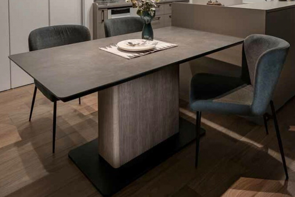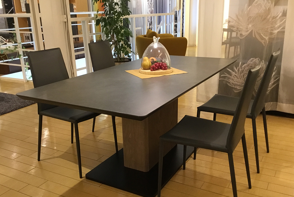 スタイリッシュな脚部が印象的なモダン・ダイニングテーブル。