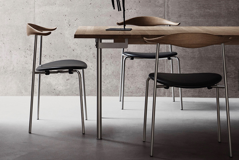 スタイリッシュな脚部が印象的なモダン・ダイニングテーブル。