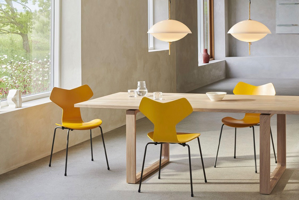 スタイリッシュな脚部が印象的なモダン・ダイニングテーブル。