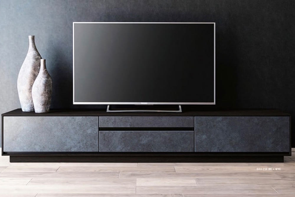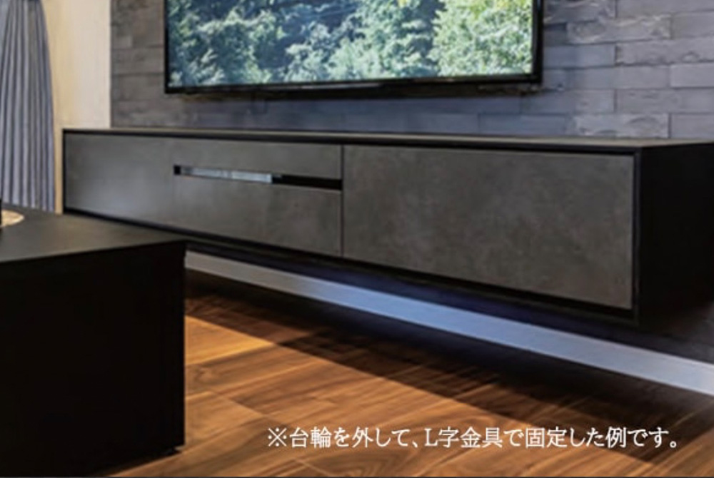 全面のブラック扉がスライドします。テレビを隠したり、飾り棚を……